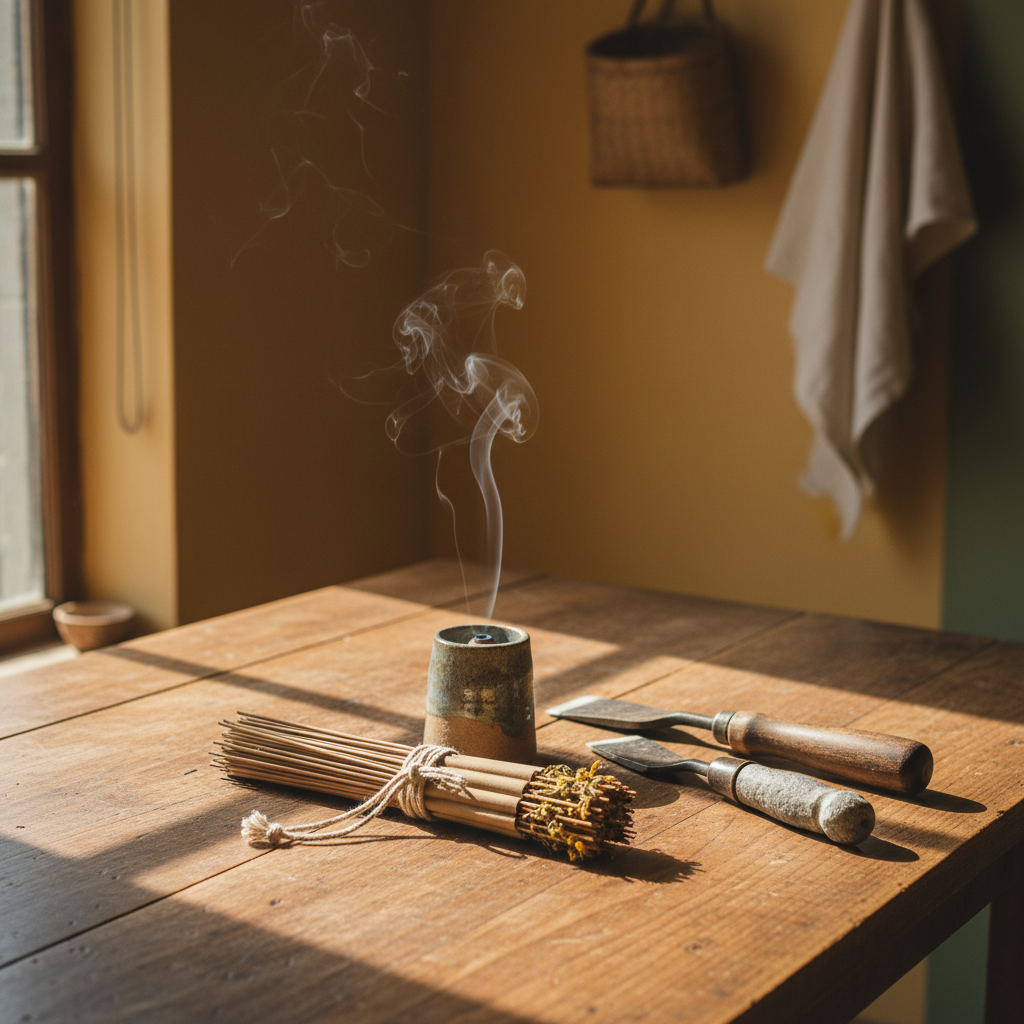 Our work is to craft and curate objects that invite this presence into modern life. Each piece — whether incense, tea tools, or future home rituals — is chosen to help you create small sanctuaries of calm.