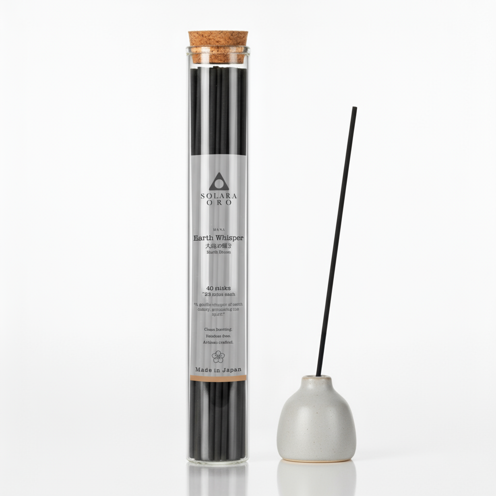 Presented in a minimalist glass tube sealed with natural cork, Earth Whisper embodies Solara Oro’s vision of modern luxury—refined, simple, and timeless. With 40 sticks per tube, it is both a lasting indulgence for yourself and a thoughtful gift to share serenity with others.