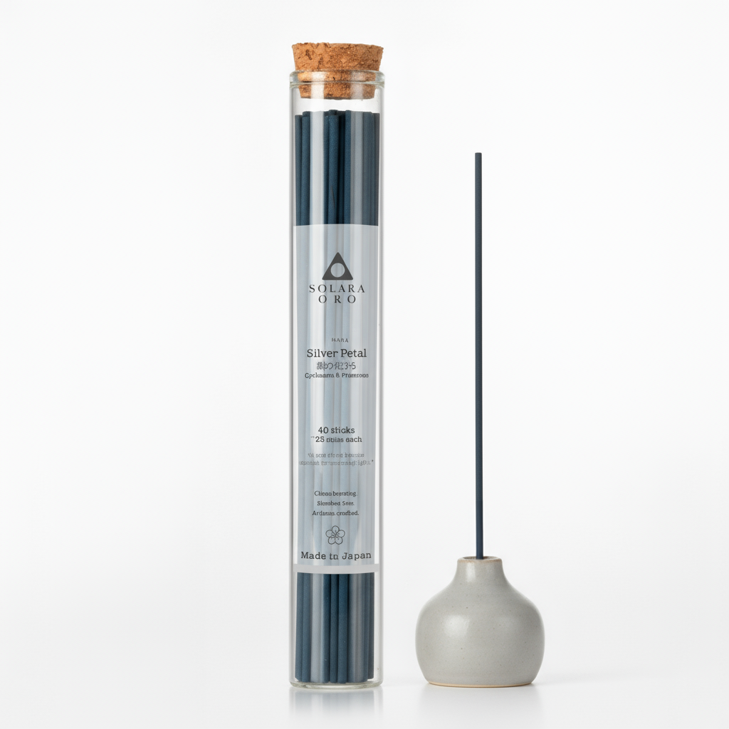 Encased in a cork-sealed glass tube with minimalist design, Silver Petal embodies Solara Oro’s vision of modern luxury: refined, understated, and timeless. With 40 sticks per tube, it serves as both a personal indulgence and a thoughtful gift to share moments of tranquility.